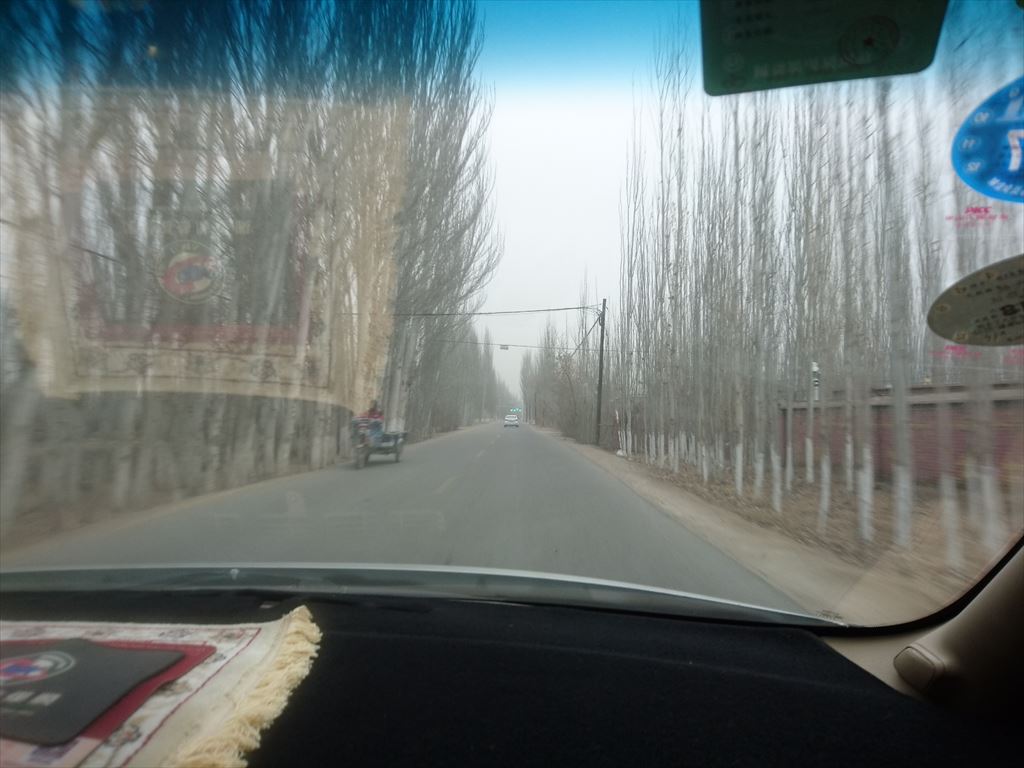 高々とそびえるポプラ並木を抜け、果てしない砂漠の中に一直線に伸びる舗装道路を時速100キロ超で爆走する。